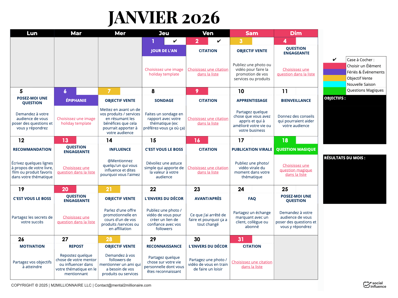 sur les réseaux sociaux grâce au Planificateur Marketing de Contenu de Mental2Millionnaire.